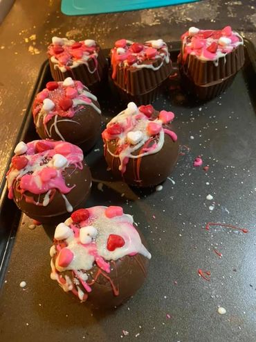 I do many different kinds of chocolate and create unique chocolate delights for for all the different holidays and seasons too. I have milk chocolate, white chocolate, cameral, peanut butter, cookies & cream, chocolate almond and many more varieties to suit every taste. I also do special orders and have chocolate to sell at the rink, so if you're looking for something in particular, please send me a message and I will be happy to help.